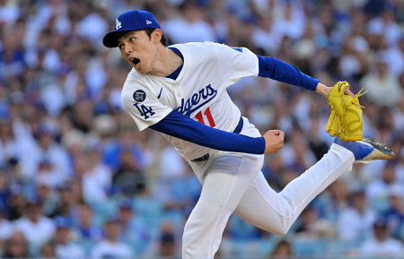 米大リーグのプレーオフ。ドジャースはフィリーズを延長11回、2―1でサヨナラ勝ちして3勝1敗とし、リーグ優勝決定シリーズ進出を決めた。佐々木(写真)は8回から救援し、3回を無安打無失点の好投=9日 【ロイター時事】
