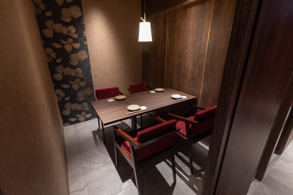 「全席個室 蒸しと酒 みちる」の4人がけテーブル席個室(写真提供=第一興商)