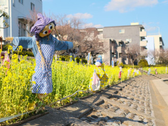 勝島運河沿いの「しながわ花海道」(品川区東大井2)で1月14日、「かかしコンテスト」の投票受け付けが始まった。