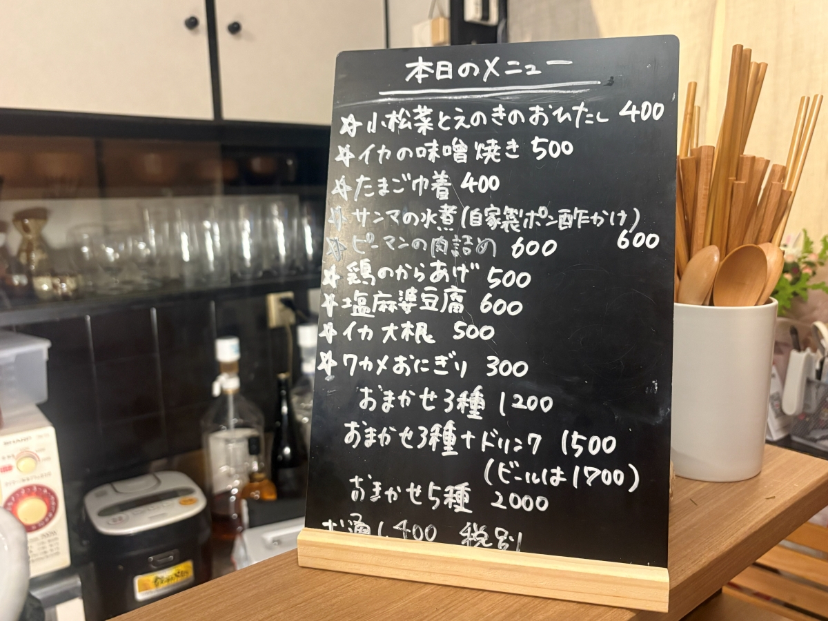 本日のメニューの看板。全て七崎さんが手作りで料理を用意する