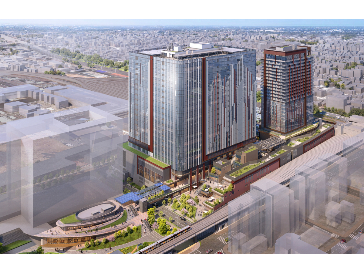 「OIMACHI TRACKS」イメージ(写真提供=JR東日本)。左から、建設予定の品川区役所の新庁舎、オフィスタワー、ホテル・住宅タワー