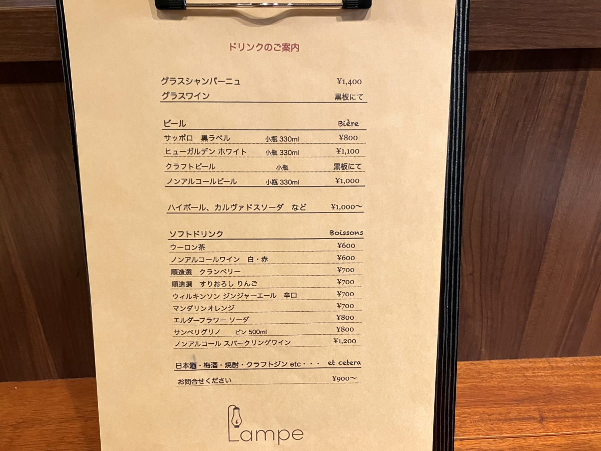 「Lampe」ドリンクメニュー