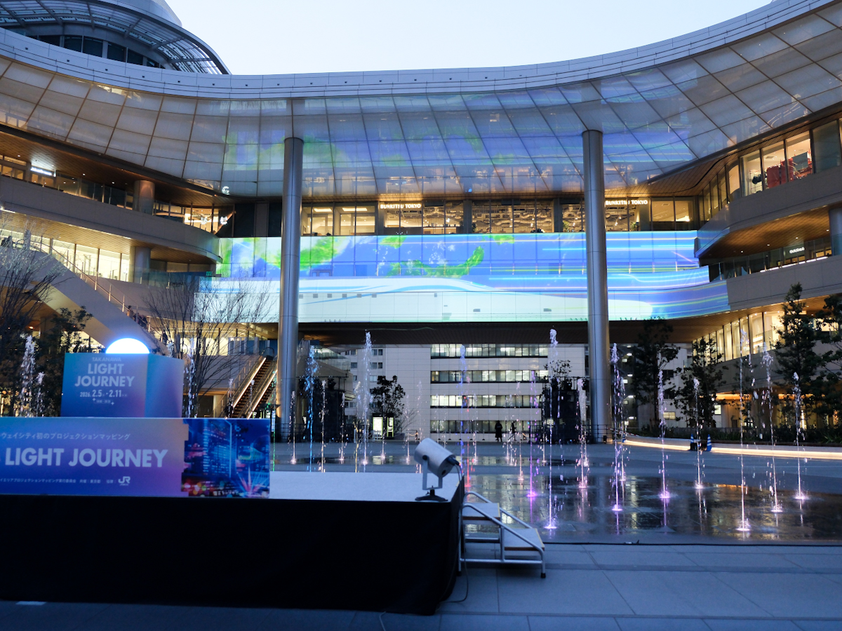 プロジェクションマッピングイベント「TAKANAWA LIGHT JOURNEY(タカナワ ライト ジャーニー)」が2月5日、複合施設「TAKANAWA GATEWAY CITY(高輪ゲートウェイシティ)」(港区高輪2)で始まった。