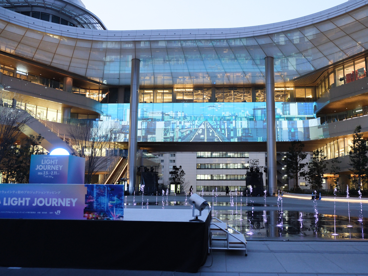 プロジェクションマッピングイベント「TAKANAWA LIGHT JOURNEY(タカナワ ライト ジャーニー)」が2月5日、複合施設「TAKANAWA GATEWAY CITY(高輪ゲートウェイシティ)」(港区高輪2)で始まった。