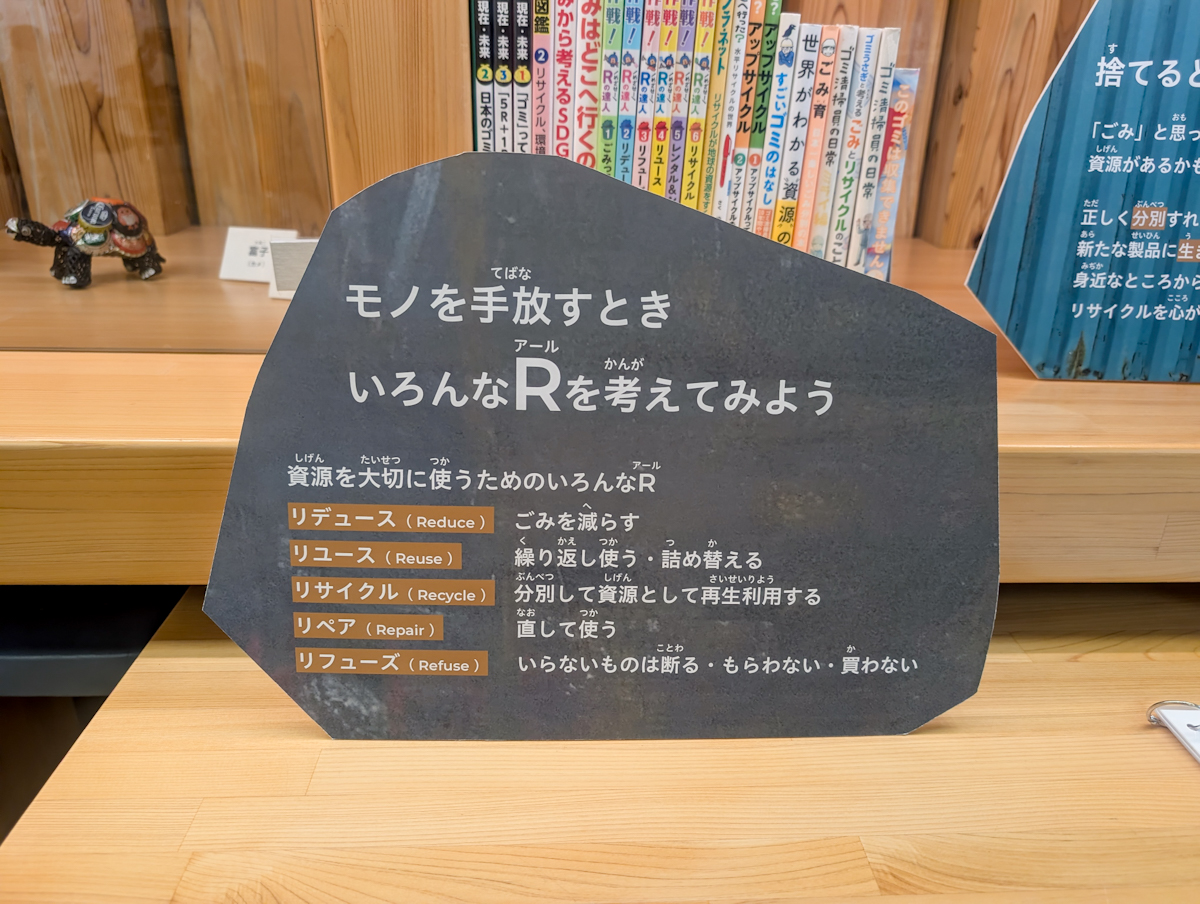 館内には、ごみ問題について学べるボードも掲示する