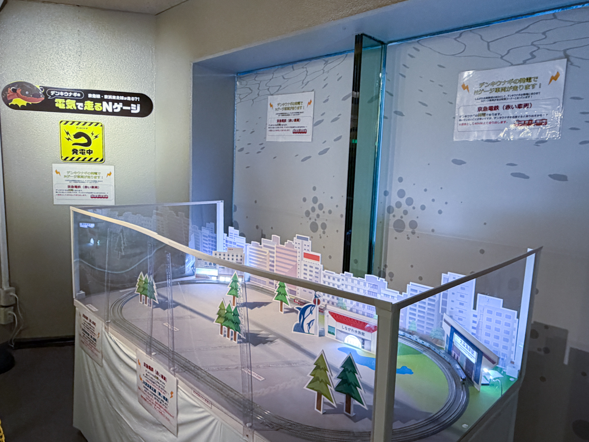 デンキウナギの電力で走るNゲージ車両の展示