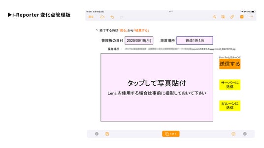 23カ所の変化点管理板の写真保存に毎日1時間かかっていた作業をゼロに。i-Reporterで日付・設置場所を選択するだけで、写真が自動的に正しいフォルダに保存。kViewerで全部署の管理板を一画面で確認可能に。必要な写真を探す時間も最大10分以上から数秒に短縮し、品質管理・改善活動が効率化。